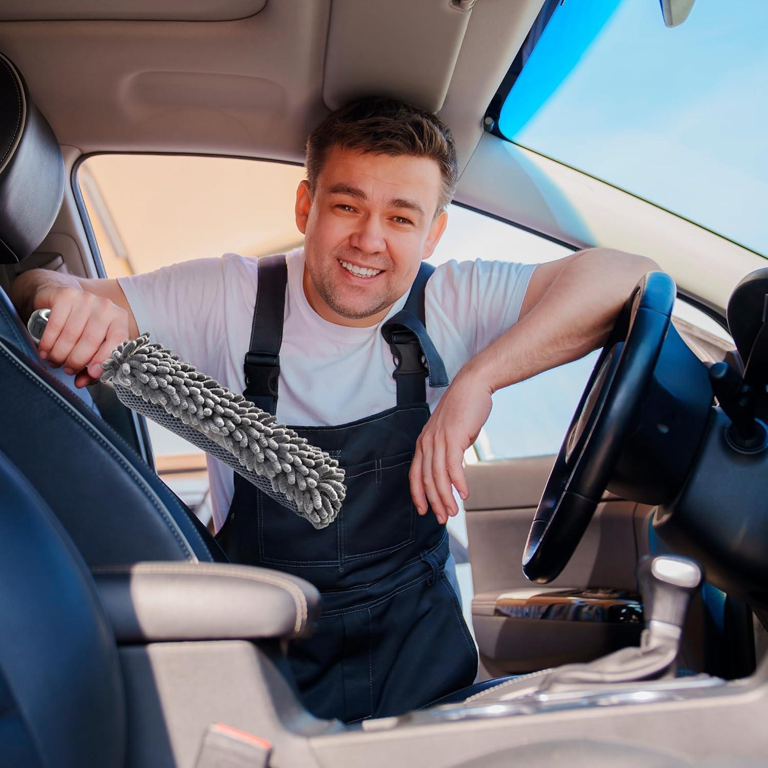 One Sweep And You're Done: Our microfiber interior car duster effortlessly picks up dirt, dust, and pollen in just one sweep! The gray microfiber effectively removes debris from your car without leaving behind annoying lint, making it the perfect tool for professional interior detailing in cars, trucks, SUVs, and RVs.