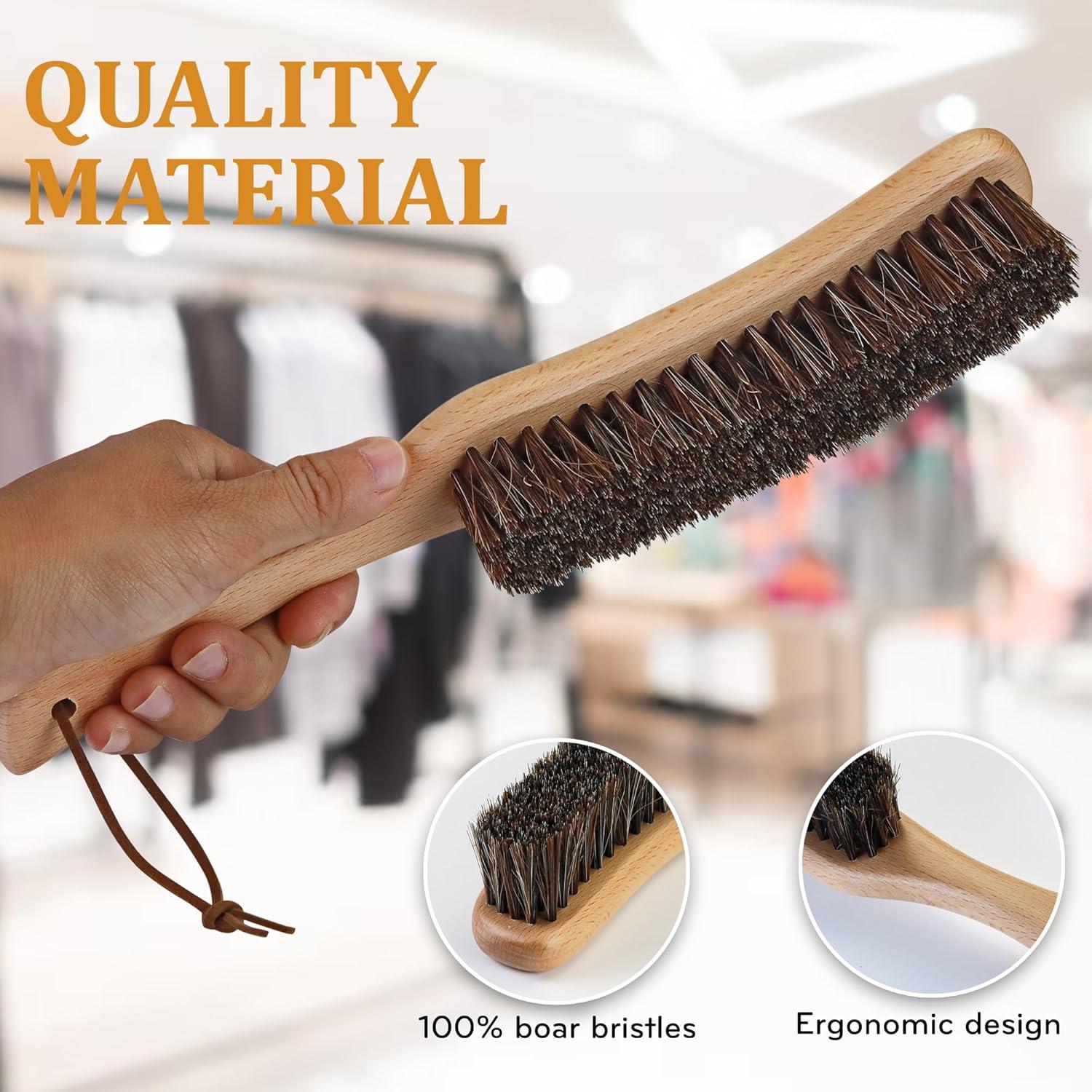 Lint Brush for Clothes with 100% Soft Horse Hair Bristle, Large Beech Wood Handle, Lint Remover for Hat, Pet Hair, Suits, Cashmere, Wool, Velvet, Suede, Shoe(Black Boar Bristle)