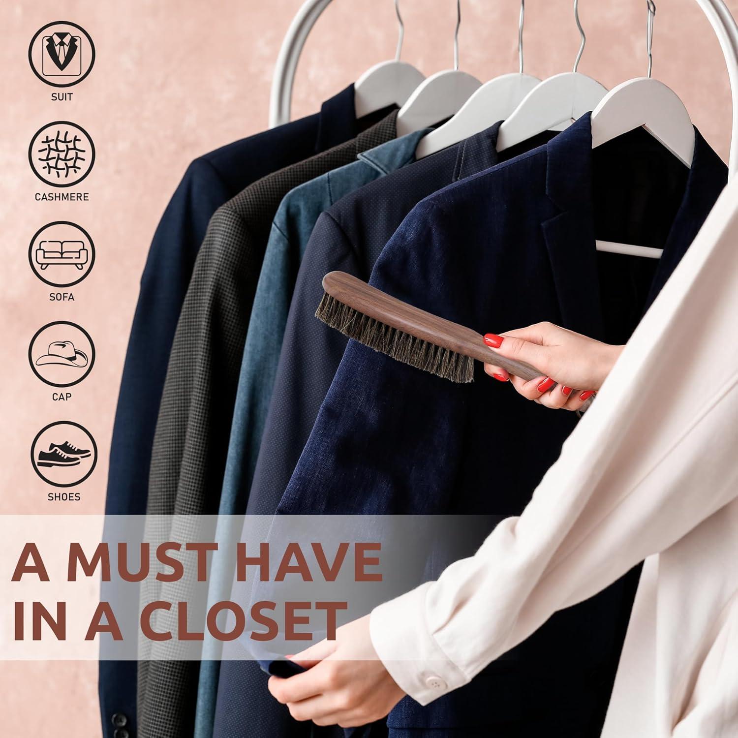 Lint Brush for Clothes with 100% Soft Horse Hair Bristle, Large Beech Wood Handle, Lint Remover for Hat, Pet Hair, Suits, Cashmere, Wool, Velvet, Suede, Shoe(Horse Hair Bristle)