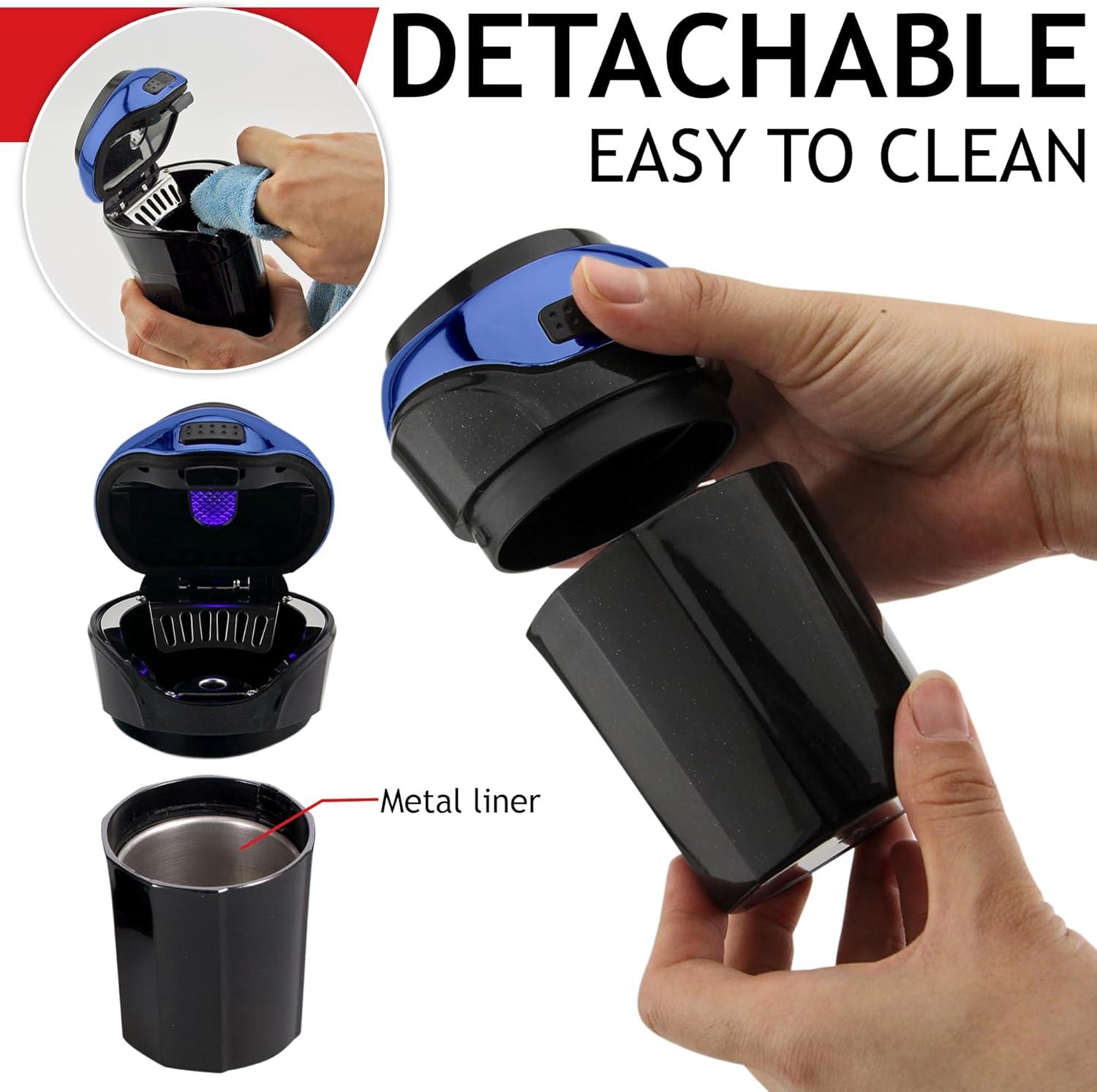 DETACHABLE & EASY TO CLEAN: It's is portable car ashtray with a removable liner, easy to clean, good sealing performance and the smoke not easy to spread. Consists of two parts: the head and cup body, press the back button, take the cup off and clean the liner easily. It is an excellent protection for ashtray bottom.