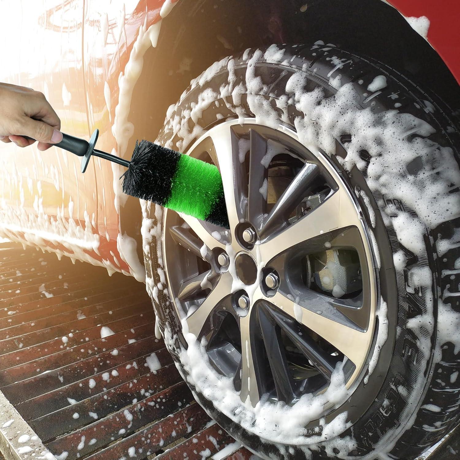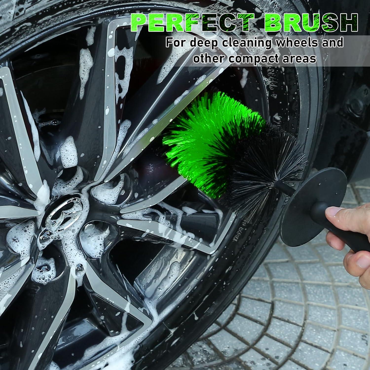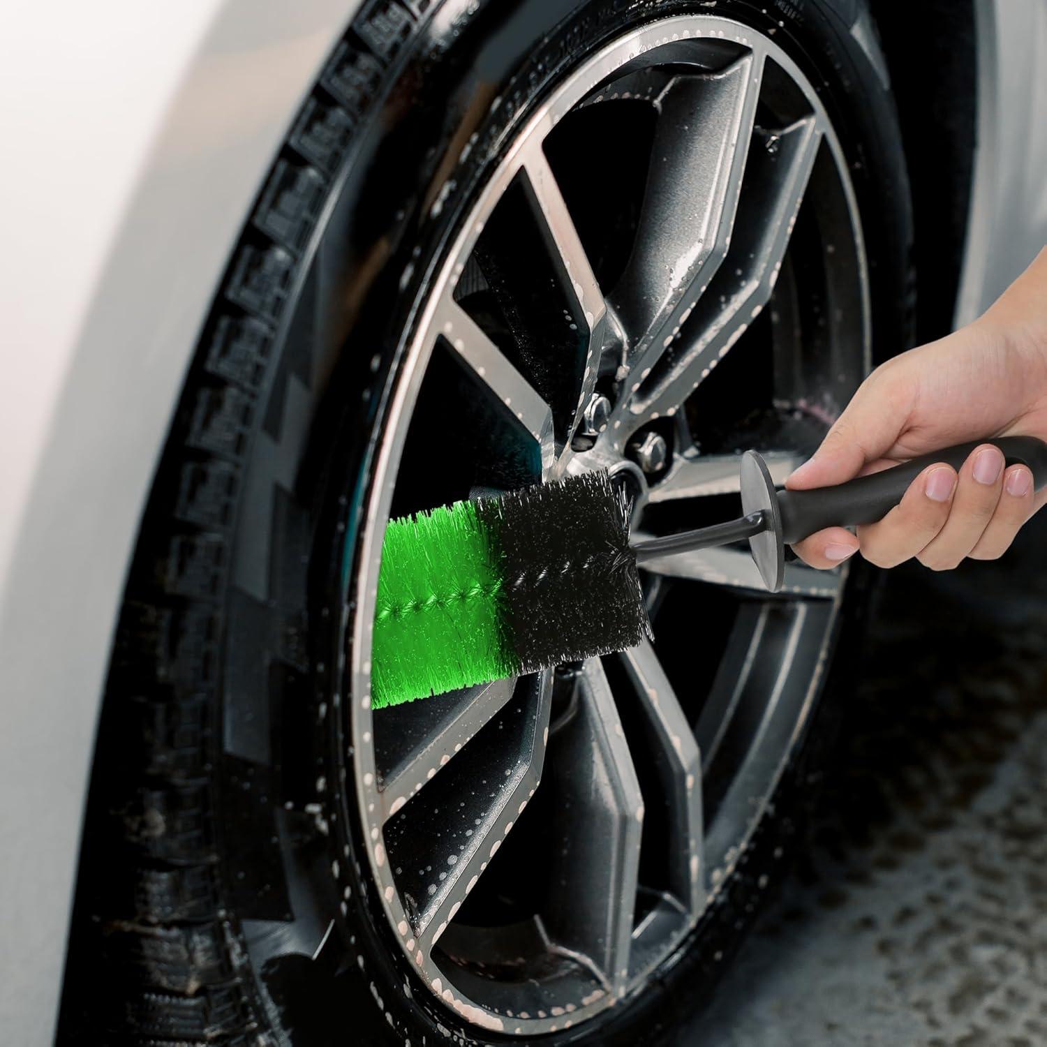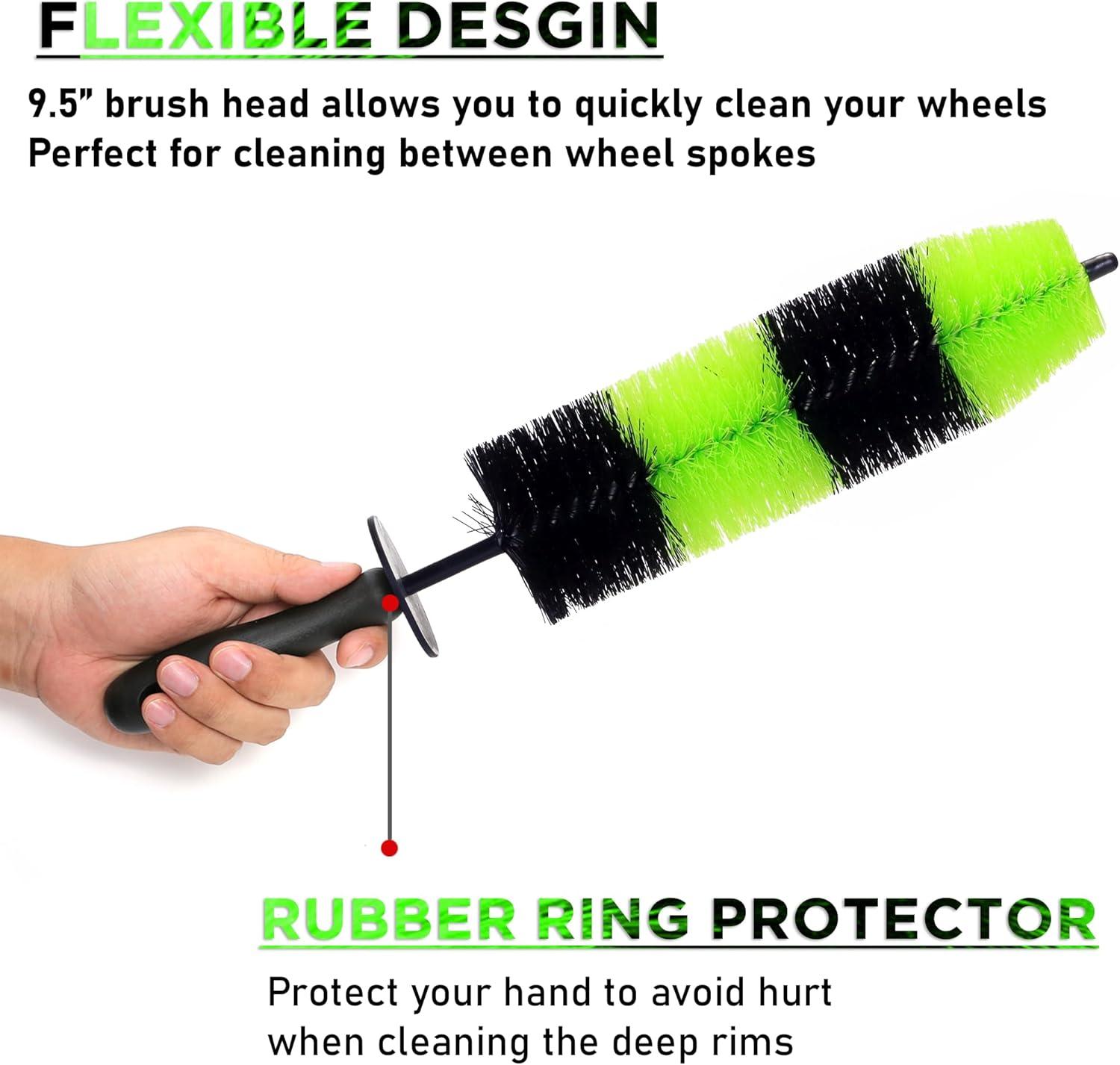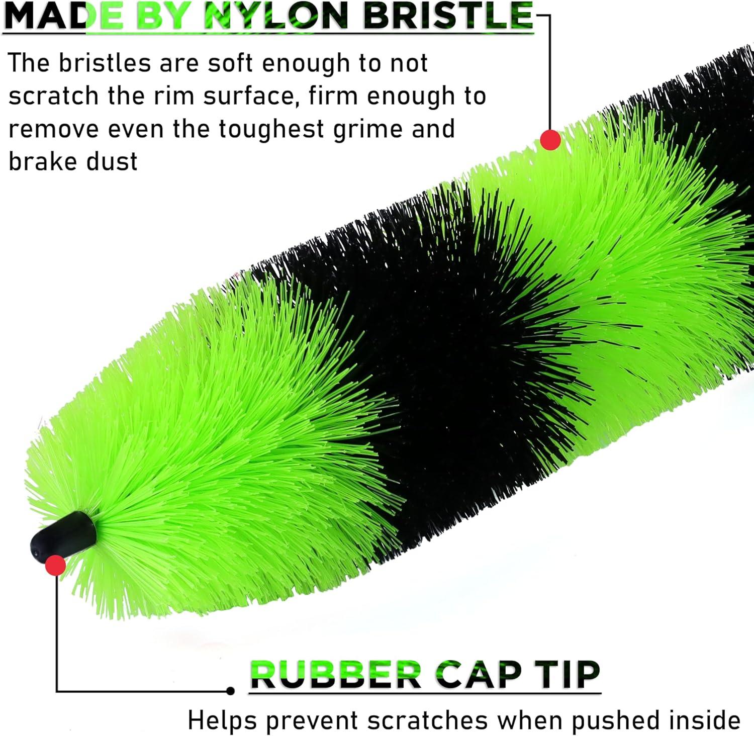 Premium Detailing Brush: Our wheel brush has bristles measuring 9.5 inches, making it easy to reach delicate nooks and crannies in wheel rims and tires. The brush features a specialized design that effectively removes stubborn dirt, brake dust, and grime from the wheel rim, saving you time and effort.