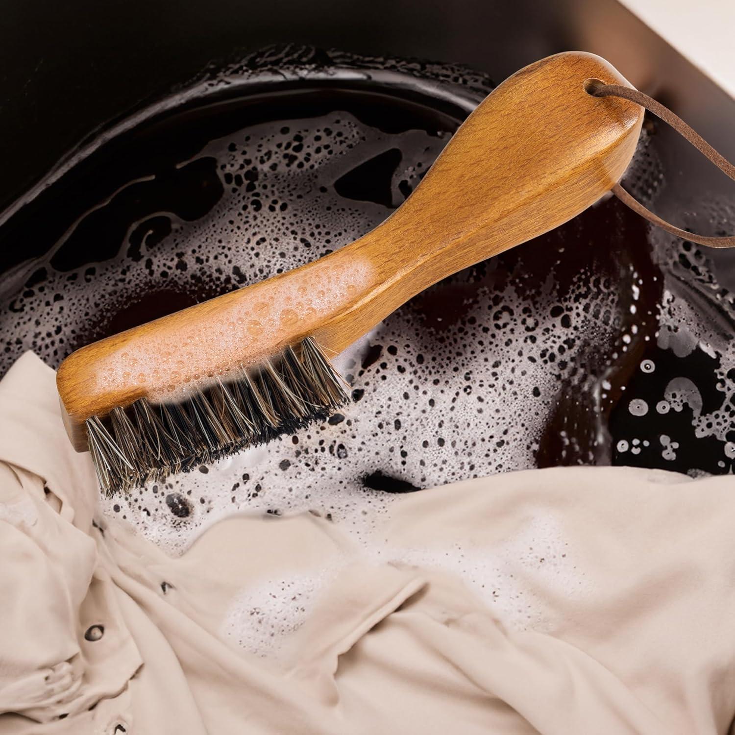TAKAVU Stain Brush, Laundry Brush for Stain Removal, Natural Horse Hair Cleaning Brush with Ergonomic Handle, Suitable for Delicate Fabrics Without Damage, Perfect Laundry, Shoes, Boots, Home(2pcs Horse Hair Bristle)